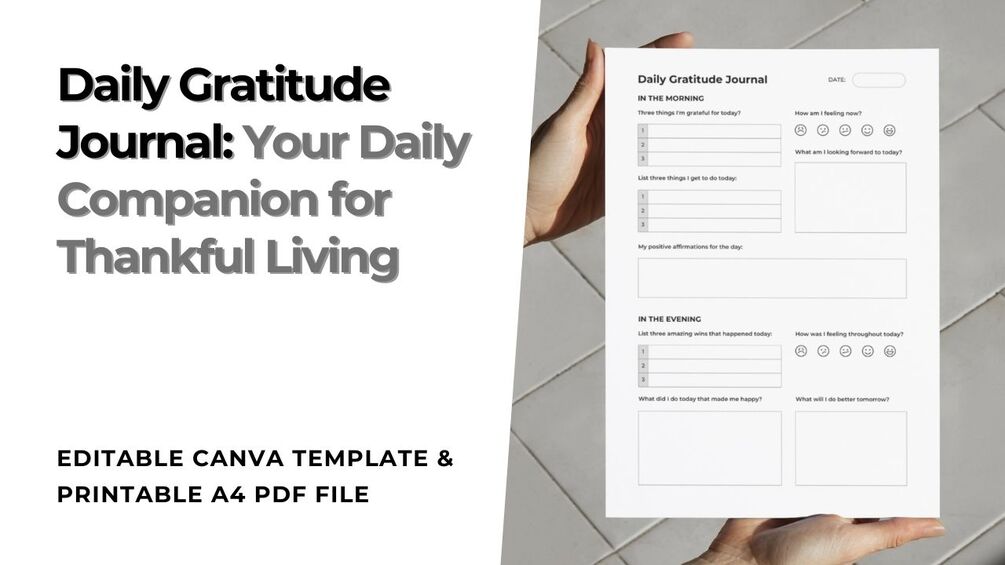 Daily Gratitude Journal - Editable Canva Template & A4 Printable PDF